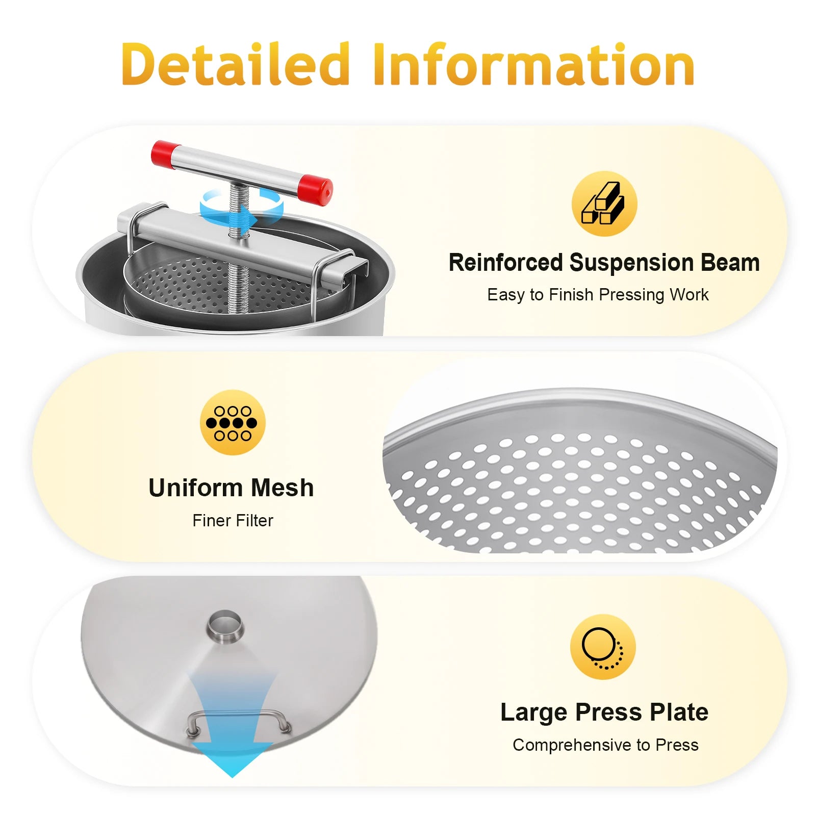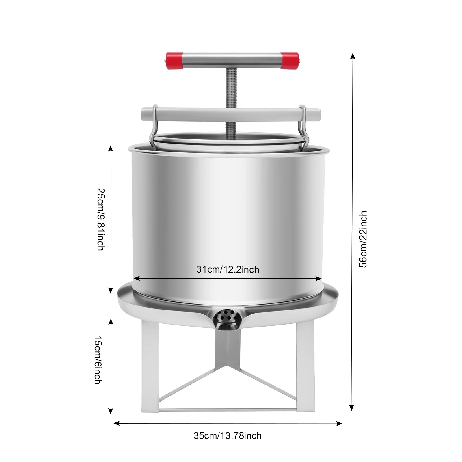 Introducing the 13L Manual Honey Extractor Stainless Steel Honey Grape Juice Squeeze Tool Filter, the perfect solution for beekeepers and juice enthusiasts alike! This versatile manual press machine is designed to effortlessly extract honey from honeycombs and juice from fruits and vegetables, ensuring you enjoy the freshest and most nutritious products possible.
