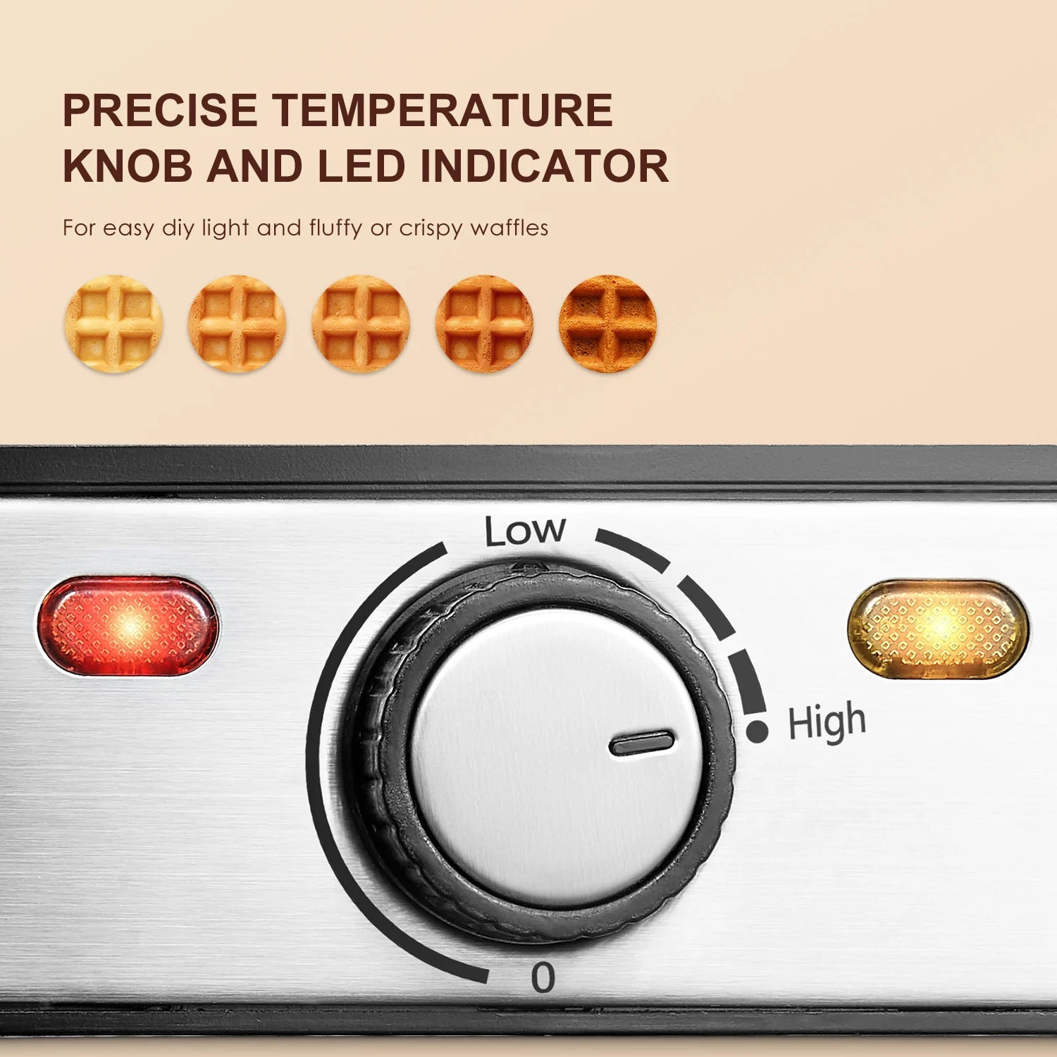 - Nonstick Iron Plates: The durable nonstick coating guarantees easy waffle release without any mess, making cleanup a breeze with just a damp cloth.