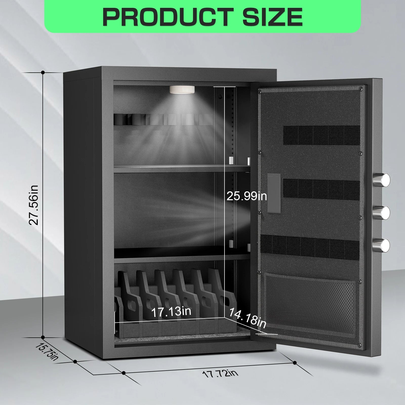 Elevate your home security with the 6.0 Cub Unassembled Extra Large Safe from Kavey. Designed to accommodate your family's precious valuables, this safe boasts an impressive external size of H27.56" x W17.72" x D15.75", providing ample storage space for everything from laptops and jewelry to firearms and important documents.