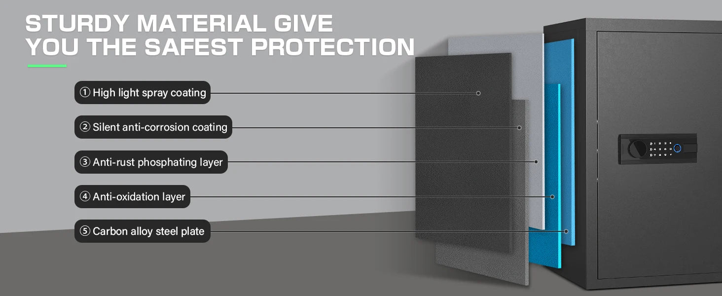 - Heavy-Duty Construction: Made from low-carbon alloy steel, the safe is equipped with 3 solid locking bolts and a 50mm thick reinforced steel door to provide superior anti-theft protection.