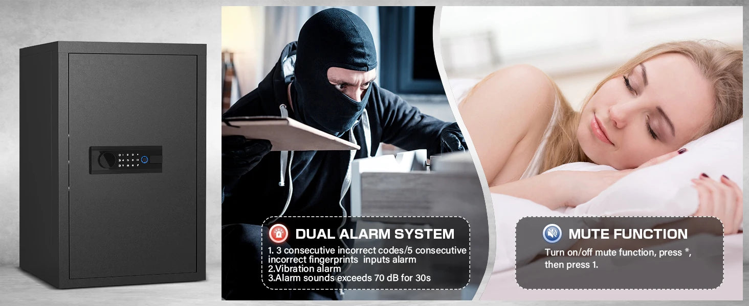- Double Alarm System: Your security is paramount; the dual alarm system activates after three incorrect password attempts or violent movements, sounding an alarm over 70 decibels.