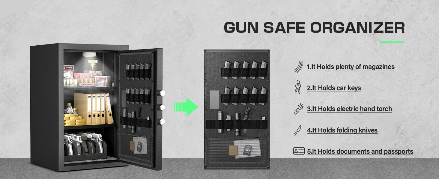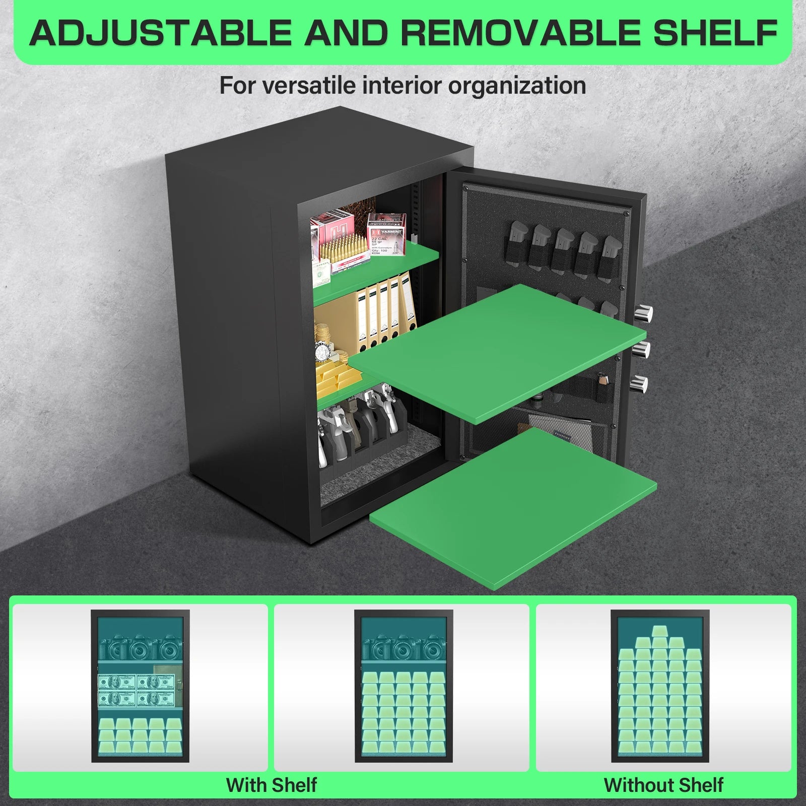- Enhanced Storage Solutions: Features 2 adjustable and removable shelves along with a gun rack and door organizer to cleverly store magazines, keys, and other accessories.