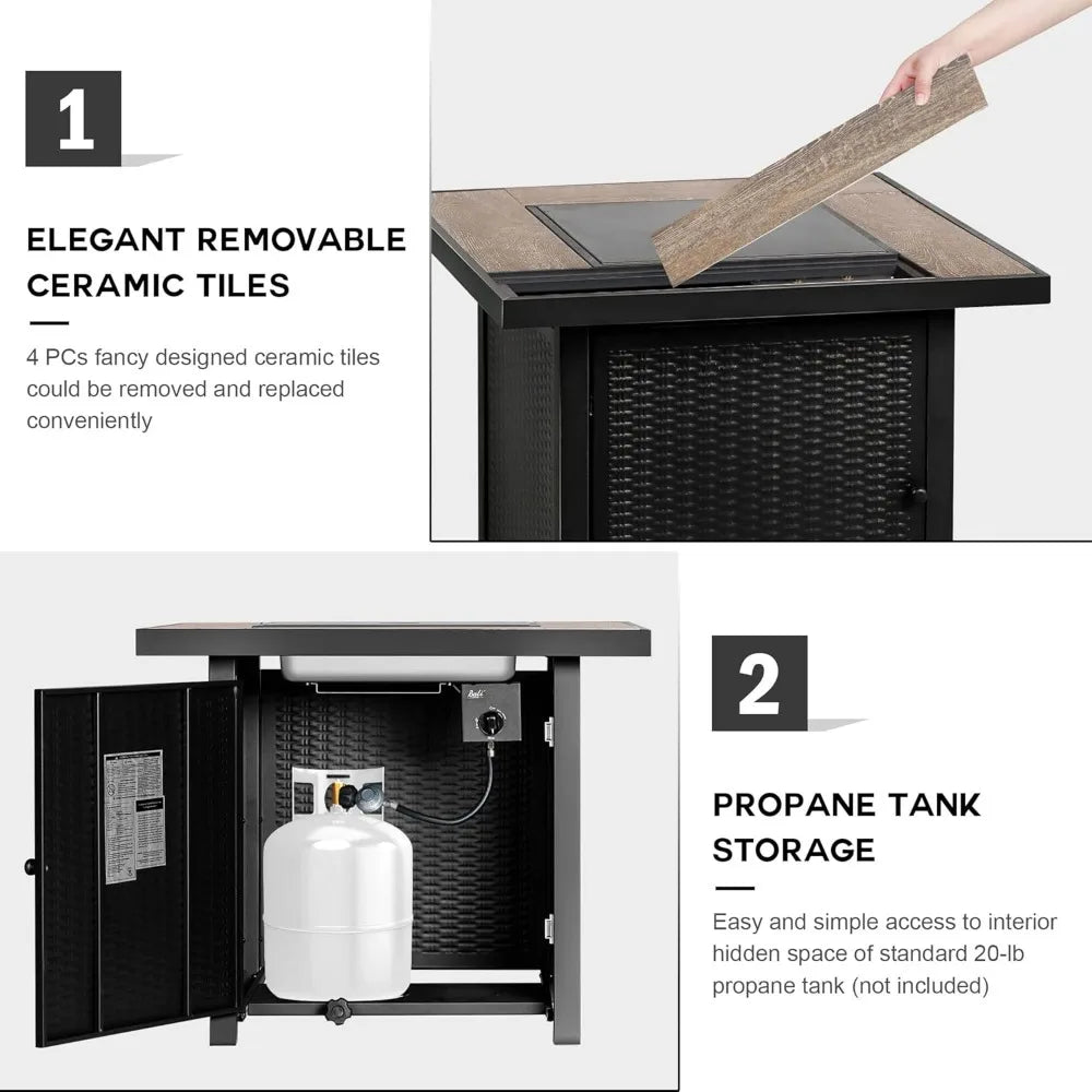 Elevate your outdoor entertaining experience with our 30 Inch Propane Gas Pit Table. Designed for both functionality and aesthetics, this fire pit table is the perfect addition to your backyard, garden, or terrace. With a robust 50,000 BTU stainless steel burner, it creates a mesmerizing flame that fosters a warm and inviting atmosphere for family gatherings and social events.