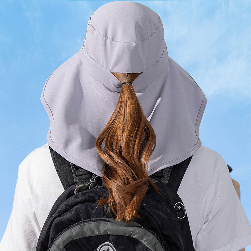 Rollable Wide Brim Sun Hats For Women with Neck Flap Ponytail Hole